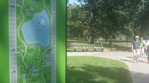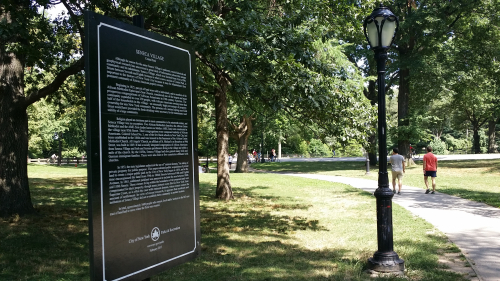 Today, there’s not much of anything on the surface left of Seneca Village. As noted, Columbia has undertaken an archaeological dig at the site, and the city has erected a small plaque at the site. Not many people, we observed, took the time to read the sign on the day of our visit. But that may have been because it was a warm summer’s day and no one except takings nerds were all that interested in historical details. The nearby water fountain received more attention.