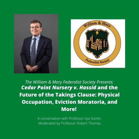 Professor Ilya Somin, a nationally-recognized expert in eminent domain, takings, and related topics, is zooming in to speak about “Cedar Point Nursery v. Hassid and the Future of the Takings Clause: Physical Occupation, Eviction Moratoria, and More.”