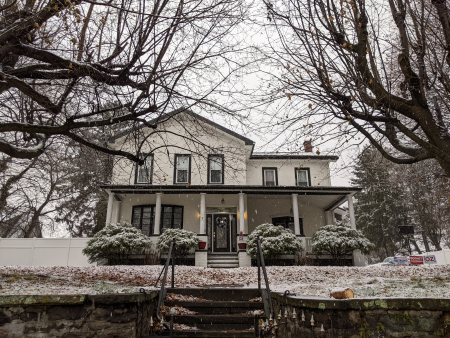 We spent today — a wet and snowy one — with a colleague (and now friend) at the actual property that gave rise to the litigation in Pittston, Pennsylvania, visiting the site, talking to the present and former owners of the Mahon home, and learning more about the case, the people involved, the arguments, and the history and process of anthracite coal mining that led to the dispute.