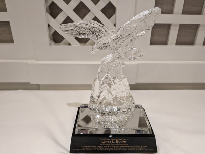 Friends and colleagues, tonight we honor Professor Lynda L. Butler with our 2024 Crystal Eagle. She will be an excellent awardee and continue to be an ambassador for property rights and will bring great credit to us, and to the cause of civil rights. She has been—and will continue to be—a leading advocate recognizing the importance of property rights to the rule of law, and as a necessary foundation for human flourishing.