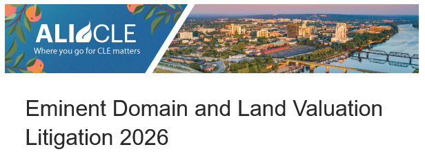 We all know that the annual ALI-CLE Eminent Domain and Land Valuation Litigation Conference is 2.5+ days of the best national CLE programming on the stated subject. Get a cycle’s worth of CLE credits, including Ethics, taught by experienced practitioners and legal scholars, across three separate tracks (from which you can choose a la carte).