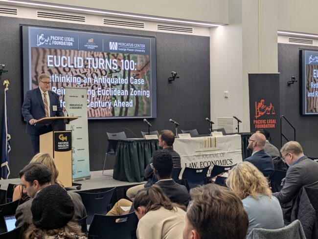 Cosponsored by the law school’s Journal of Law, Economics, and Policy, Mercatus Center, and our outfit Pacific Legal Foundation, the symposium is designed to focus the discussion of housing, zoning, and property rights (hot topics in the headlines), and ask the question: has Euclidean zoning outlived its usefulness? And if so, what, if anything, should replace it?