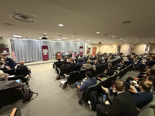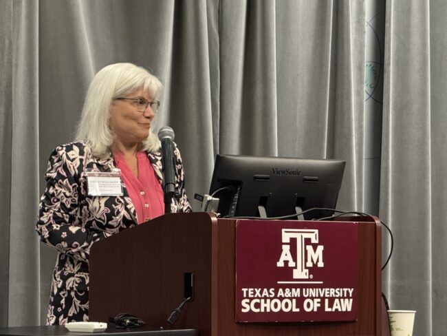 This was my first visit to the Texas A&M University (TAMU) School of Law, and I was in for a real Texas treat. The first thing I learned (thankfully, before I arrived) was that the TAMU law school ain’t in College Station, but instead lies “deep in the heart of [Forth Worth,] Texas.” Its location in Fort Worth, I discovered, is due to TAMU taking over the Texas Wesleyan University School of Law in Fort Worth just over a decade ago. And it’s no surprise that TAMU is the home of a renowned property law and water law faculty, including professors Gabriel Eckstein and Vanessa Casado Perez (who specialize in water law and served as moderators of the symposium panel presentations) and Tim Mulvaney, Chris Odinet and Aric Short.
